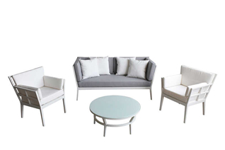 - 材料:柚木扶手或喷粉铝架或PE藤编织或特斯林网布椅背